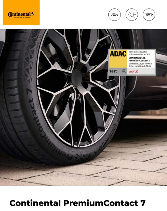 Continental PremiumContact 7 predstavuje modernú letnú pneumatiku navrhnutú pre bezpečný a komfortný výkon. Dezén je optimalizovaný pre rôzne jazdné podmienky a reflektuje požiadavky moderných vozidiel vrátane elektromobilov.