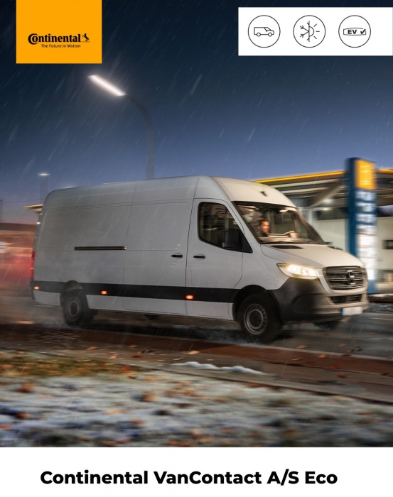 Continental VanContact A/S Eco predstavuje praktické riešenie pre vodičov, ktorí hľadajú spoľahlivú pneumatiku pre celoročné použitie bez nutnosti sezónnej výmeny.