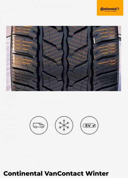 Zimná pneumatika Continental VanContact Winter je navrhnutá pre vodičov a firmy, ktoré potrebujú 100 % istotu – či už doručujete zásielky, prevážate tovar alebo jazdíte denne s plne naloženou dodávkou. Vďaka prémiovým technológiám Continental poskytuje výborný záber na snehu, presnú ovládateľnosť a bezpečné brzdenie aj na mokrých zimných cestách.