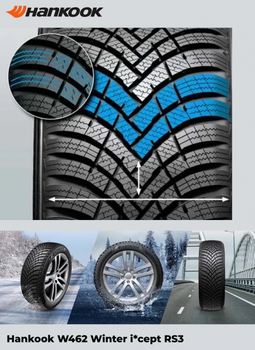 Hankook Winter i*cept RS3 (W462) je zimná pneumatika, ktorá ponúka vyvážený výkon pre mestských aj diaľničných vodičov. Vďaka novej generácii zimnej zmesi, prepracovanému profilu a hustým lamelám poskytuje istotu pri brzdení, stabilitu v zákrutách a spoľahlivý záber na snehu aj mokrom povrchu.