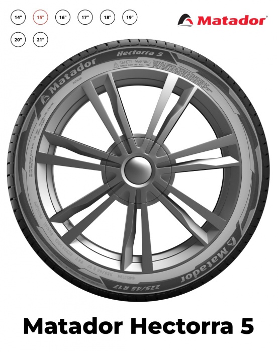 Matador Hectorra 5 je letná pneumatika pre osobné vozidlá, ktorá ponúka vyvážené jazdné vlastnosti, stabilitu a spoľahlivý výkon v bežných prevádzkových podmienkach.