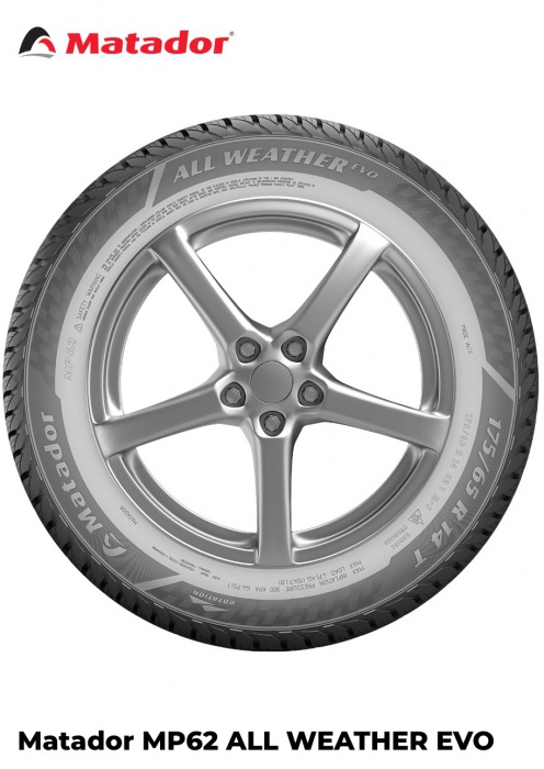 Matador MP62 All Weather Evo je moderná celoročná pneumatika vyvinutá pre vodičov, ktorí chcú jazdiť celý rok bez potreby prezúvania. Vďaka technológiám koncernu Continental kombinuje spoľahlivý výkon na mokrej vozovke, istotu na snehu a stabilitu v letných teplotách. MP62 je ideálne riešenie pre mestské a prímestské jazdenie, kde sa často striedajú rôzne podmienky.
