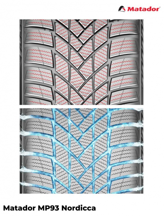 Matador MP93 Nordicca je navrhnutá pre vodičov, ktorí chcú bezpečne zvládať zimu bez kompromisov. Moderný smerový dezén zabezpečuje istotu na snehu, zatiaľ čo lamely zlepšujú brzdný výkon na mokrej vozovke. Pneumatika je ideálna na každodenné jazdenie v meste aj na dlhšie trasy.