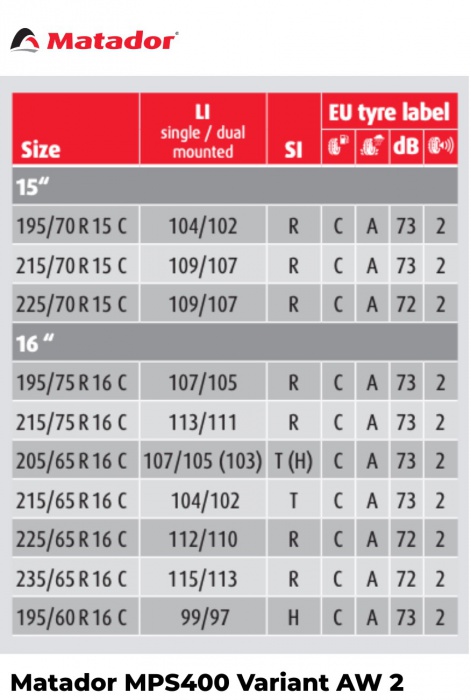 Matador MPS400 Variant AW 2 je odolná celoročná pneumatika pre dodávky a úžitkové vozidlá, ktorá ponúka istotu na mokrej vozovke, dobrý záber v zime a dlhú životnosť za výhodnú cenu.